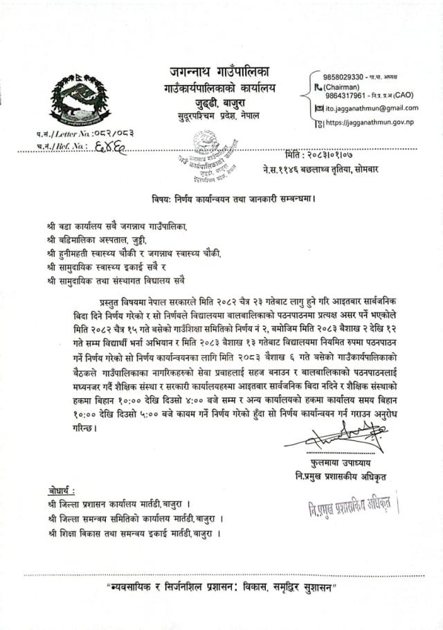 जगन्नाथ गाउँपालिका,गाउँ कार्यपालिकाको कार्यालय जुड्डी