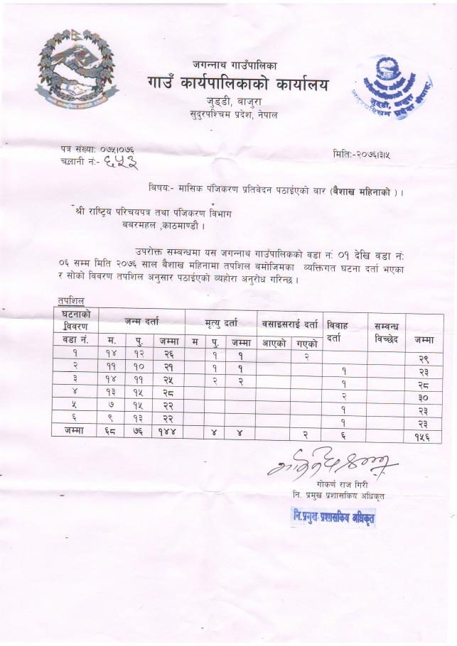 » बैशाख महिनाको पंजिकरण प्रतिवेदन
